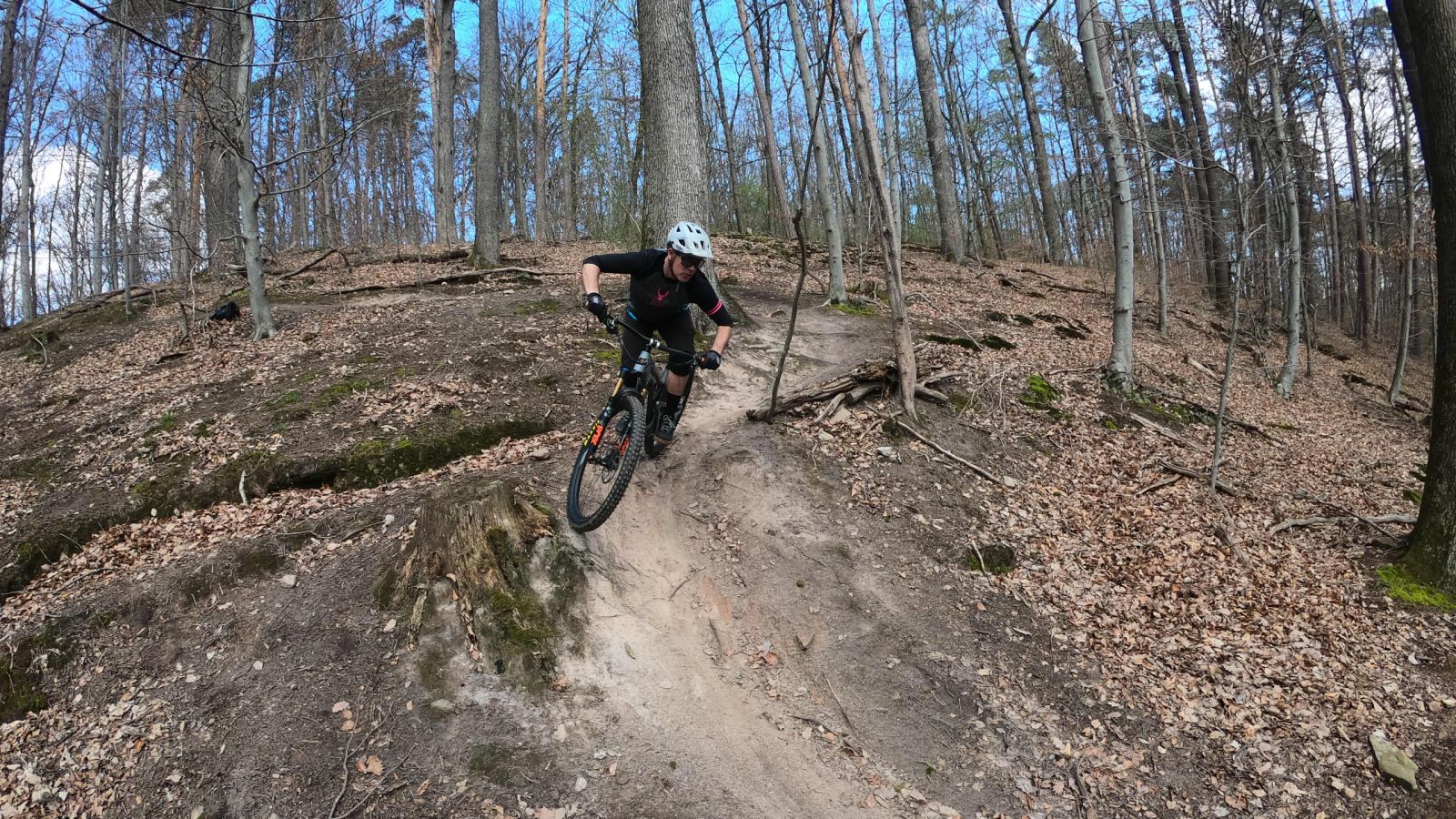 - Du führst bereits auf Trails mit kleineren Hindernissen, wie Wurzeln, Steinen oder ersten Stufen. Dabei bewegst du dich teilweise auch auf lockerem Boden bei mittlerem Gefälle.